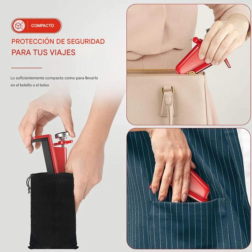 🚪【Compacto】El bloqueador de puerta es muy compacto y exquisito, se puede guardar en un bolso o bolsillo y proporcionamos una bolsa de almacenamiento adicional para guardarlo, para que pueda llevarlo consigo cuando esté de negocios o de viaje.
