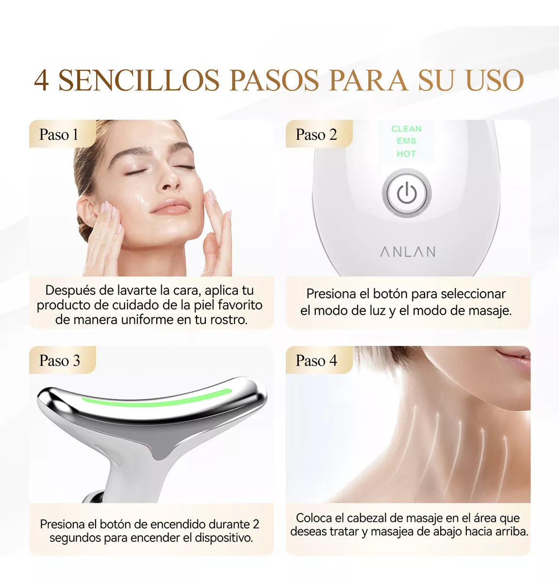 ¡Este dispositivo le ayudará a lograr una piel radiante, firme y joven desde el rostro hasta el cuello!