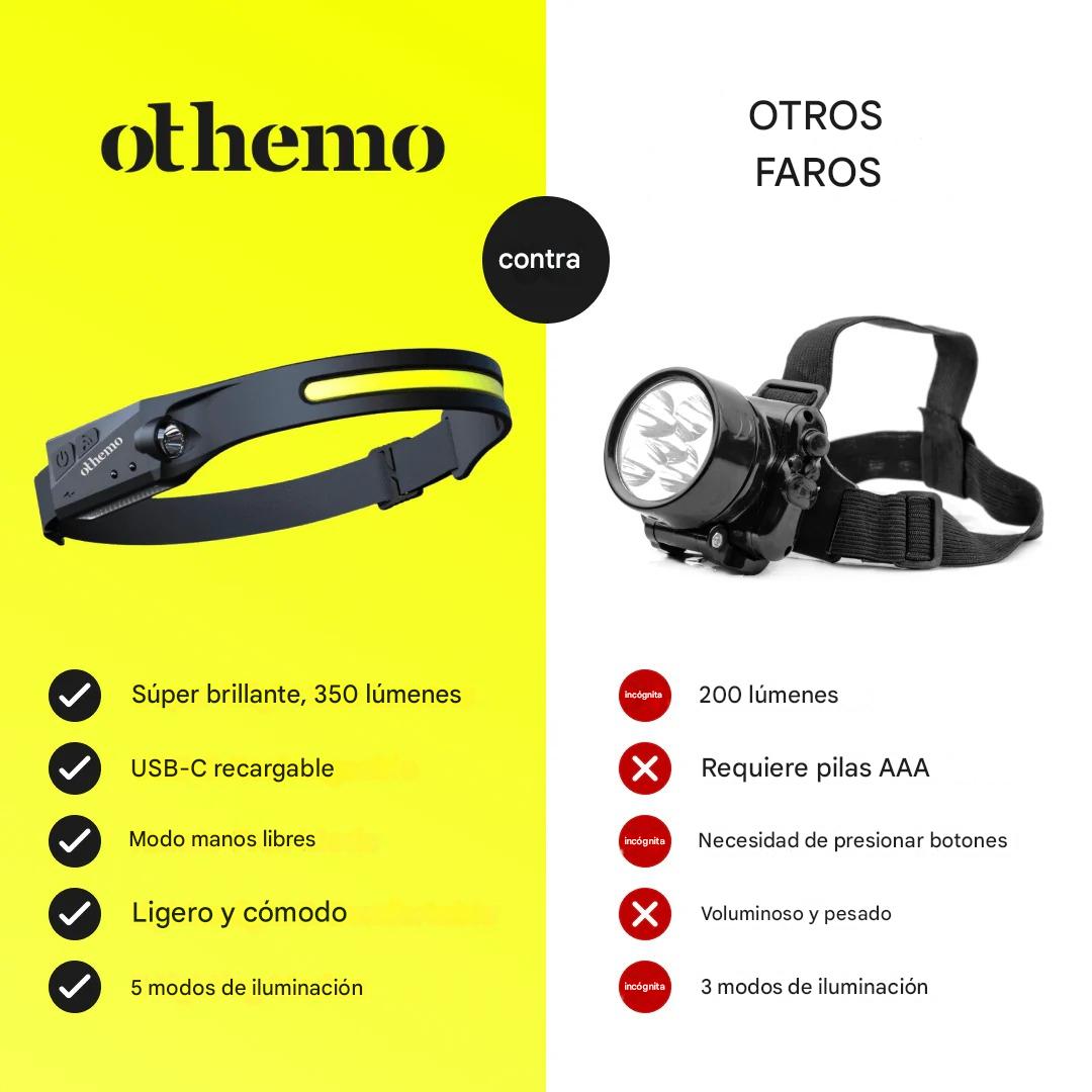 Sí, has oído bien. Son 100 % recargables mediante USB-C. ¡Ya no tendrás que comprar pilas AAA caras! La linterna frontal Othemo es una alternativa económica y ecológica a otras linternas frontales que funcionan con pilas del mercado.