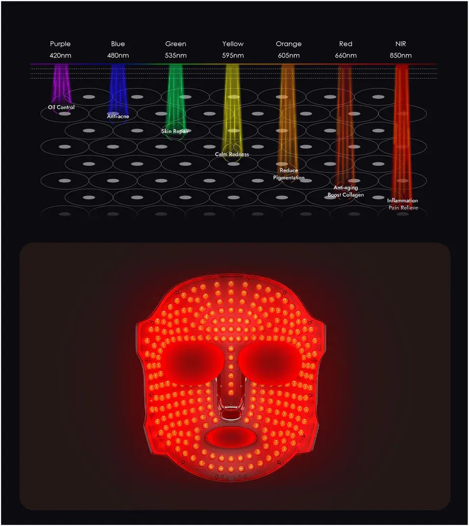 1. Tecnología LED avanzada: 288 LEDs y 7 longitudes de onda que tratan múltiples problemas de la piel.