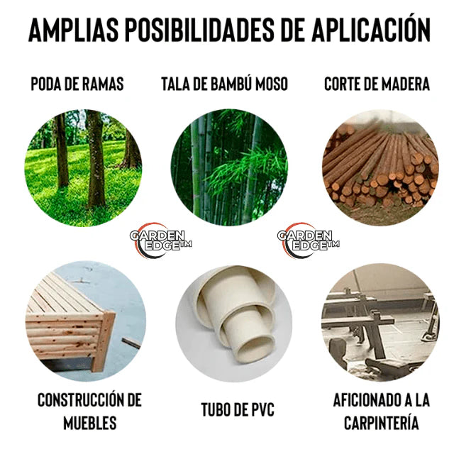 Es lo suficientemente potente para cortar ramas, arbustos y árboles con precisión quirúrgica. Ya sea que estés podando tu jardín, aventurándote en el bosque o realizando trabajos de carpintería, esta sierra será tu compañera confiable.