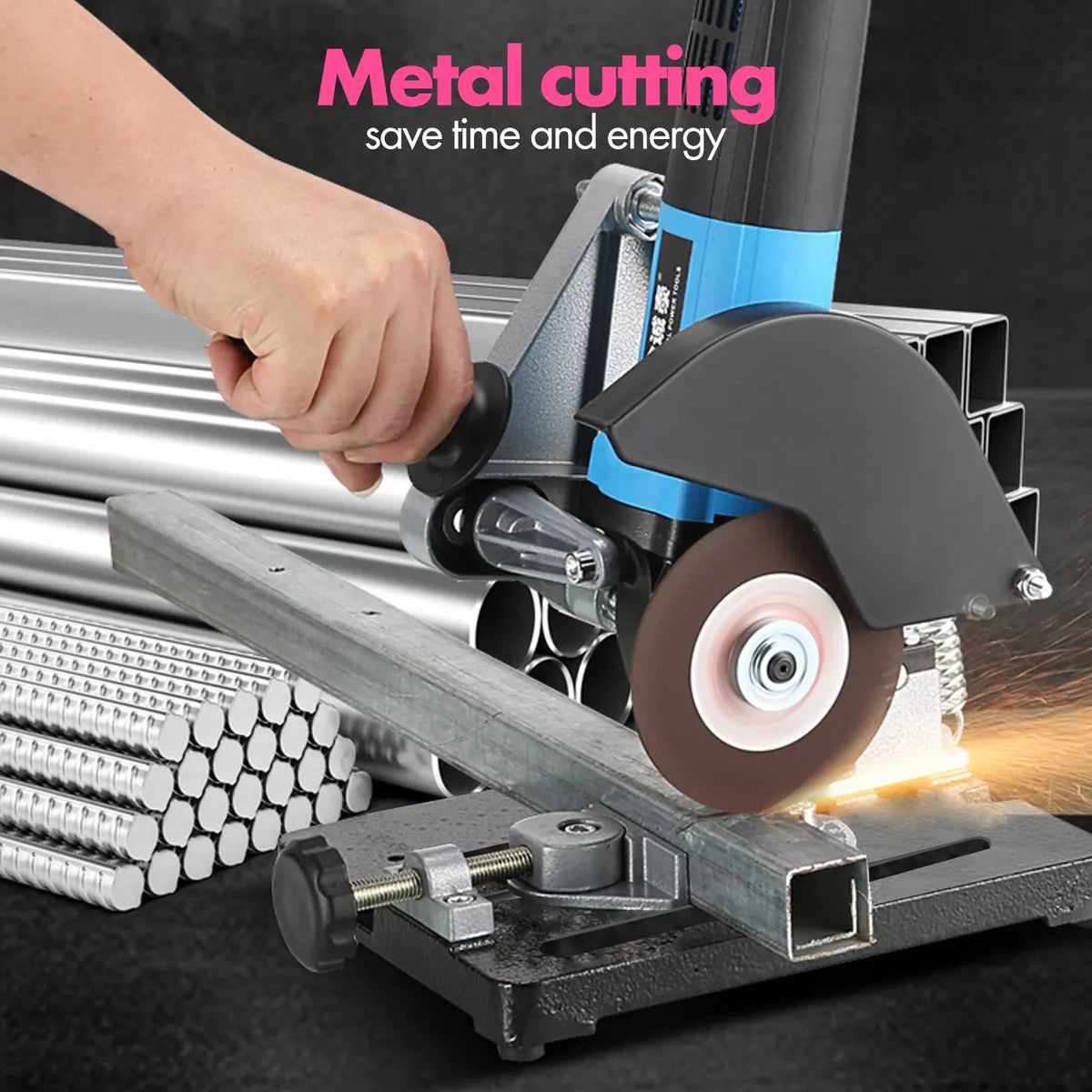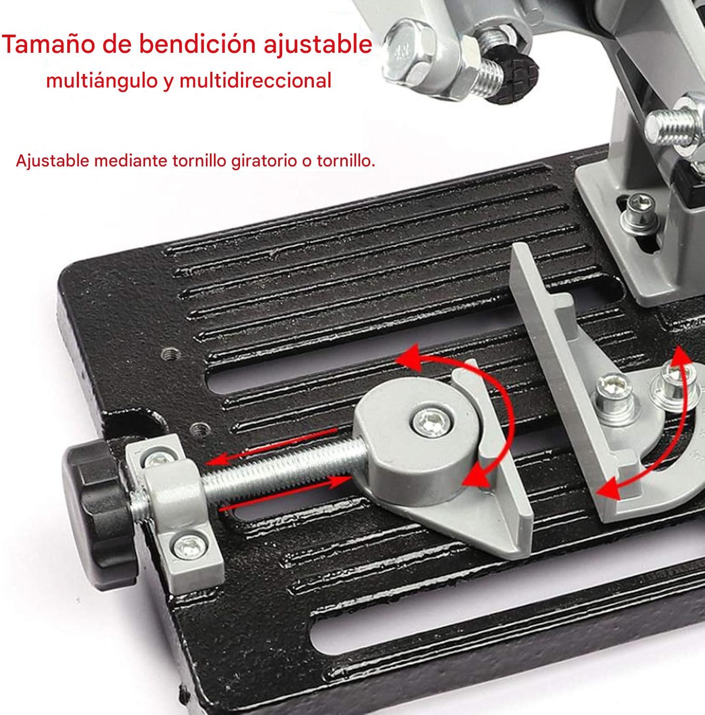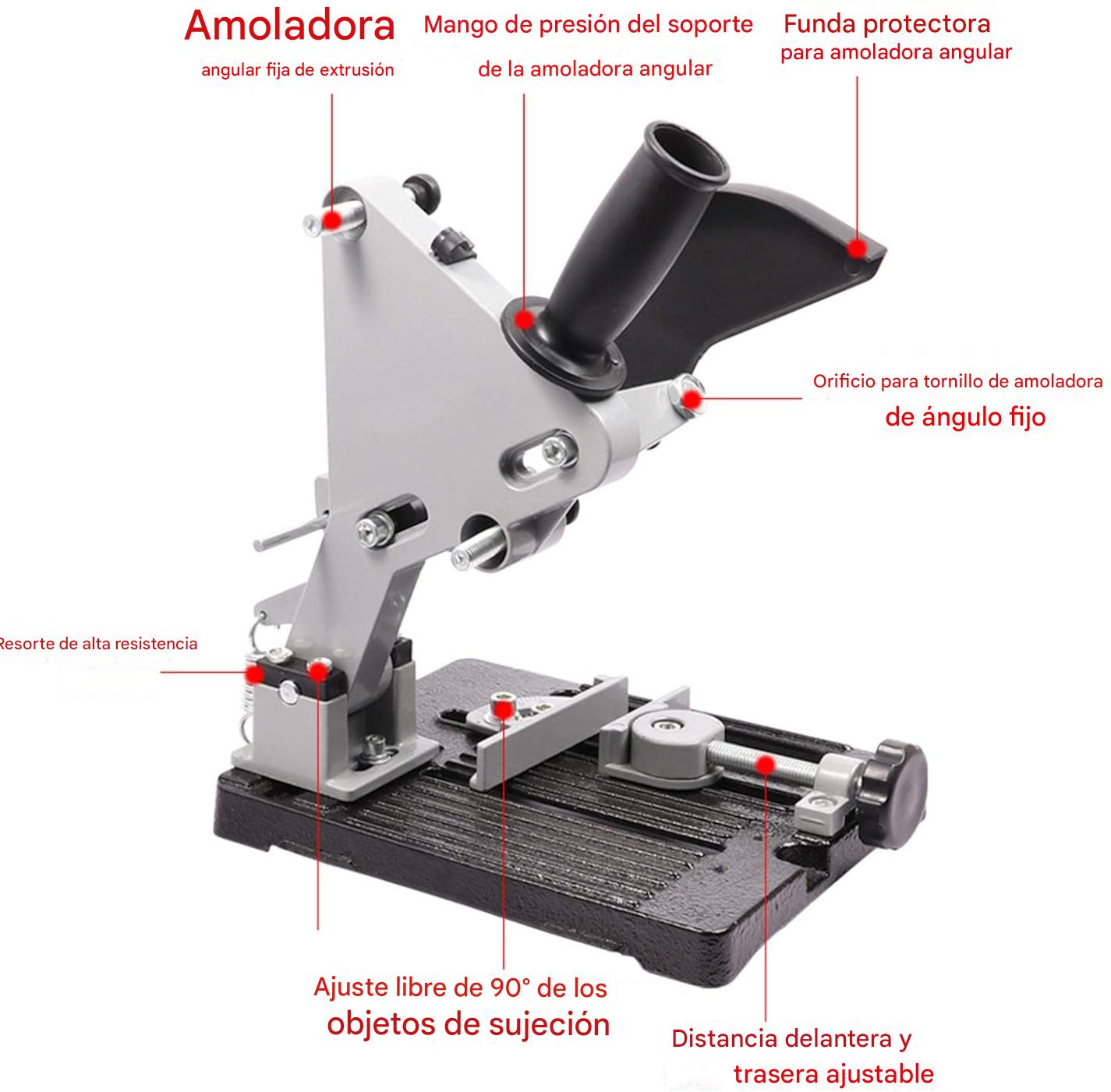 La Base para Amoladora Multifuncional ofrece una base sólida de hierro que asegura estabilidad, eliminando movimientos no deseados. Esto te permite realizar cortes más precisos y seguros, perfectos para todo tipo de materiales.