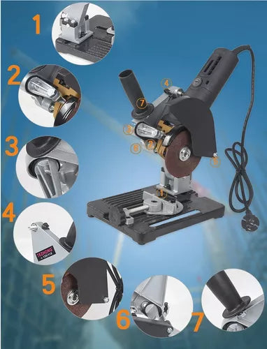 Hecha de materiales resistentes como hierro y plástico de alta calidad, la Base para Amoladora Multifuncional está diseñada para durar, incluso en los trabajos más exigentes.