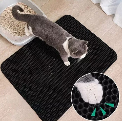 Este revolucionario tapete captura eficientemente los granos de arena que tu gato deja al usar su caja de arena, asegurando un hogar limpio y ordenado.