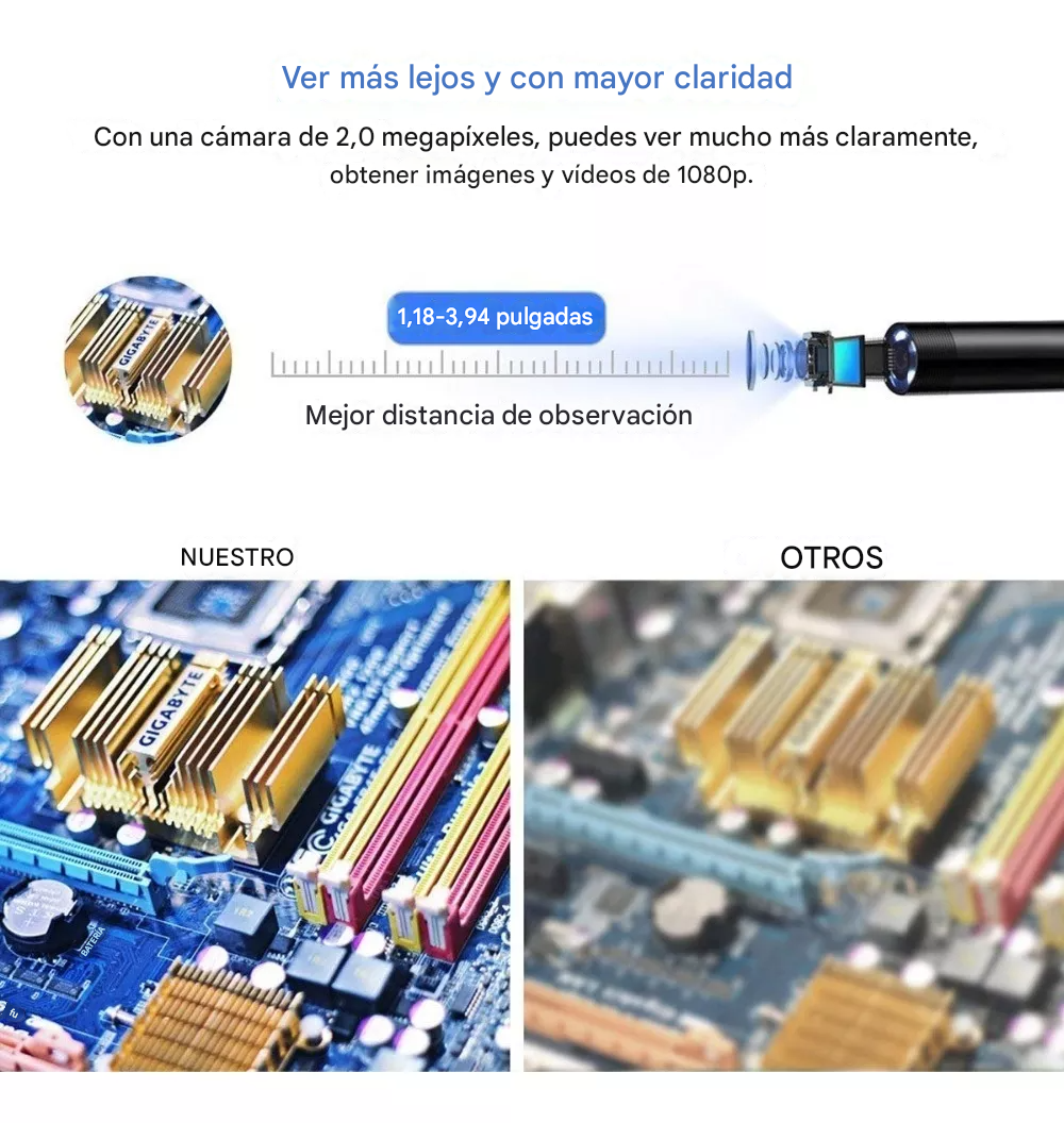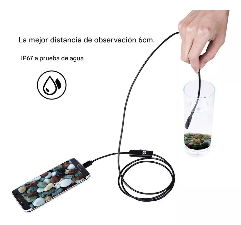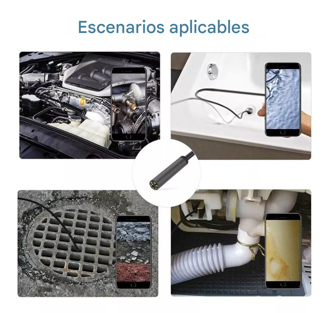 Desde inspeccionar tuberías hasta explorar motores o incluso realizar análisis detallados en áreas de difícil acceso. Su diseño impermeable IP67 y su cable flexible de hasta 10 metros garantizan un rendimiento inigualable.