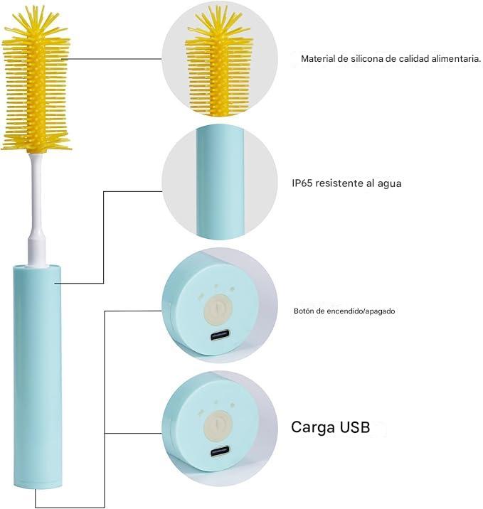 Rotación 360° automática: Llega a cada rincón del biberón sin esfuerzo.