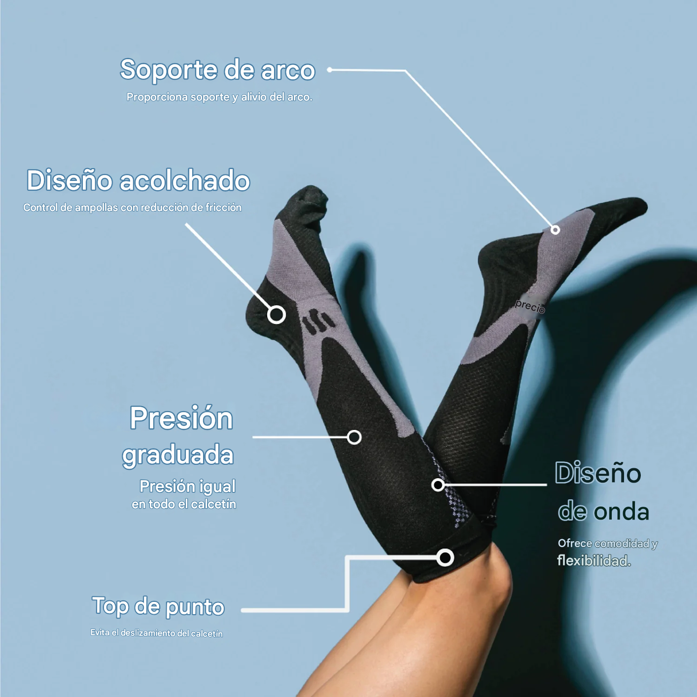 ✅ Beneficios clave: Energiza tus piernas, mejora la circulación, duerme mejor, recuperación rápida después de la cirugía y apoya la salud general de las piernas.