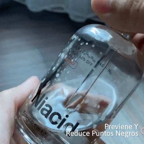 Niacid contiene Hialuronato de Sodio con un tamaño molecular personalizado, que se mantiene en la superficie de tu piel para brindar hidratación máxima.