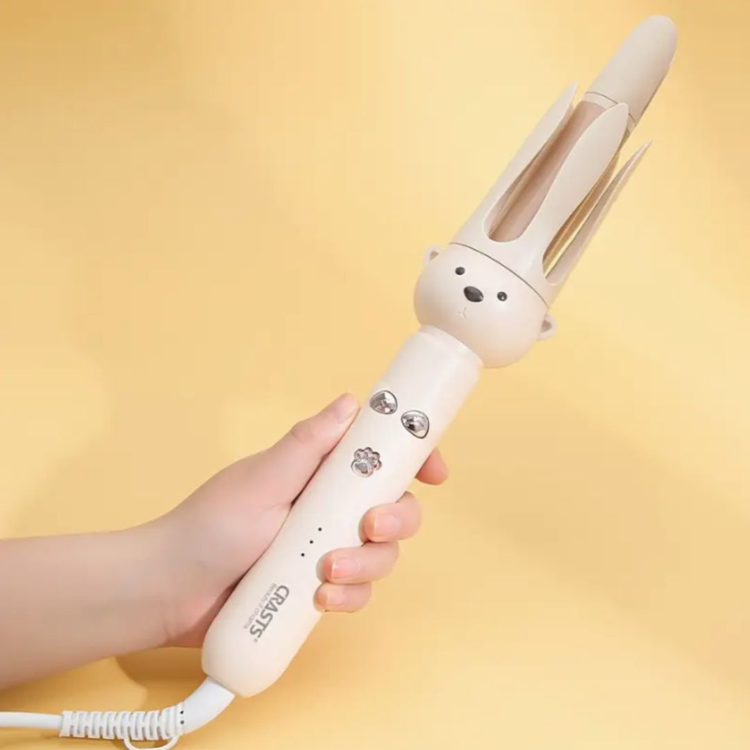 Enchufa y ajusta la temperatura, mete un mechón y presiona el botón el osito riza por ti, suelta… ¡y listo! Rizos perfectos en segundos.