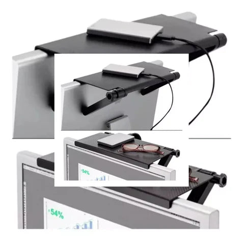 Capture el espacio adicional en la parte superior de sus pantallas y utilícelo para suministros de oficina, dispositivos multimedia, parlantes, consolas de juegos, chucherías y más
