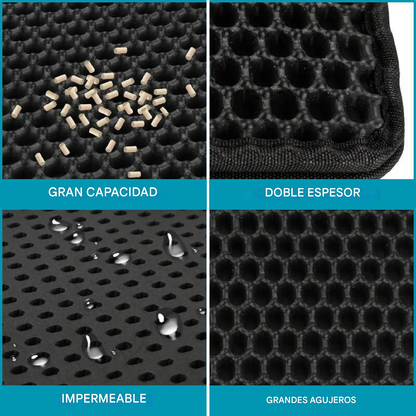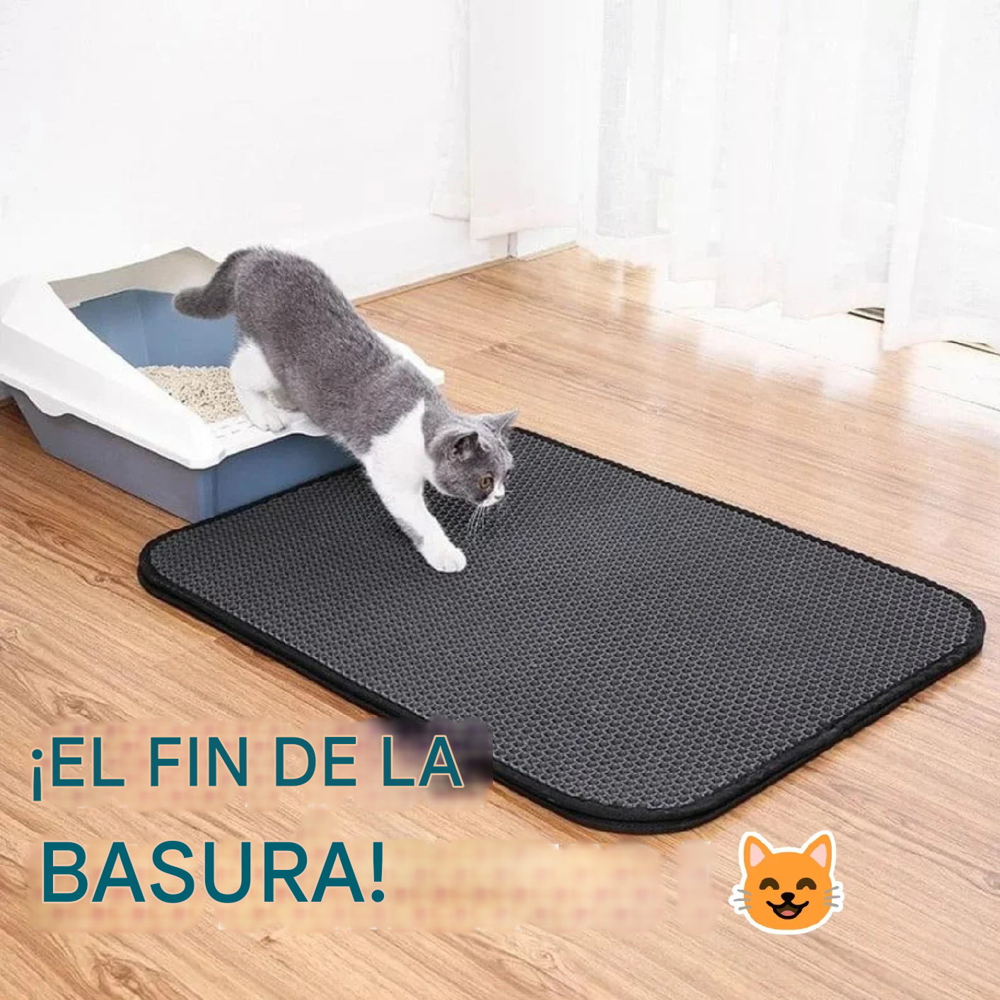 Este revolucionario tapete captura eficientemente los granos de arena que tu gato deja al usar su caja de arena, asegurando un hogar limpio y ordenado.